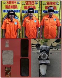 “SP (35) dan EK (38) ditangkap sebelum melakukan transaksi di salah satu halte bus di wilayah Desa Cerme Kecamatan Pace Kabupaten Nganjuk, dengan barang bukti berupa 5,20 gram sabu yang diakui berasal dari AG(36),” kata IPTU Heru.